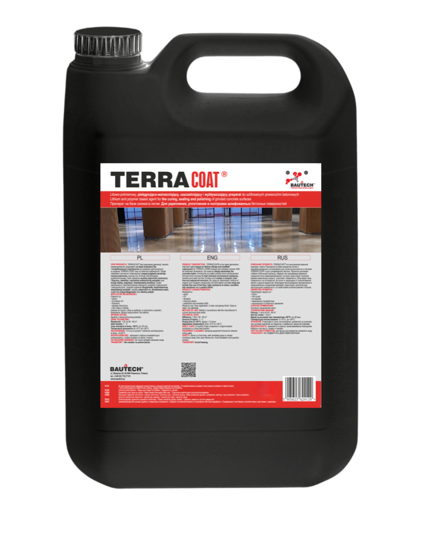 BAUTECH TERRACOAT ™ - это новейшее поколение высокотехнологичных препаратов на основе силиката лития и модифицированных сополимеров для полов, выполненных в системе BAUTECH TERRAFLOOR ™ и для шлифованных бетонов. Благодаря небольшим молекулярным размерам препарат глубоко проникает в бетонную матрицу, образуя так называемую "формулу микроармирования"поверхности, которое обеспечивает высокую химическую и физическую устойчивость, укрепляет и уплотняет поверхность пола и создает плотную и непылящую структуру.